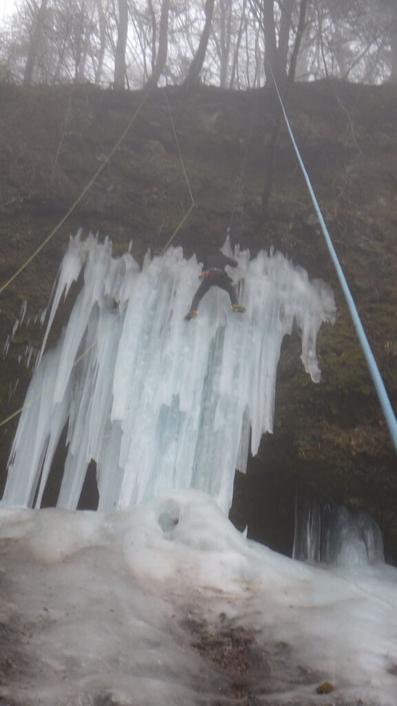 〇野さんはクライミング経験はほとんど無くてアイスクライミングは3回目。