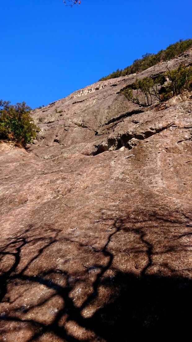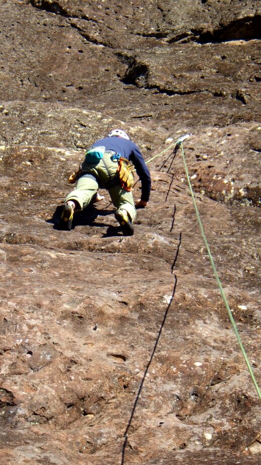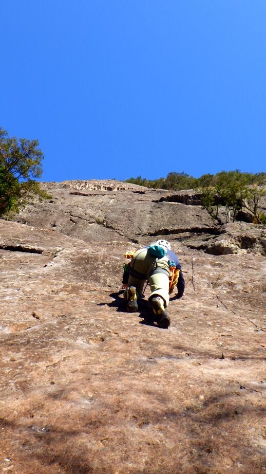 下部岩壁は先行パーティとは違うルートからブッシュのテラスへ。