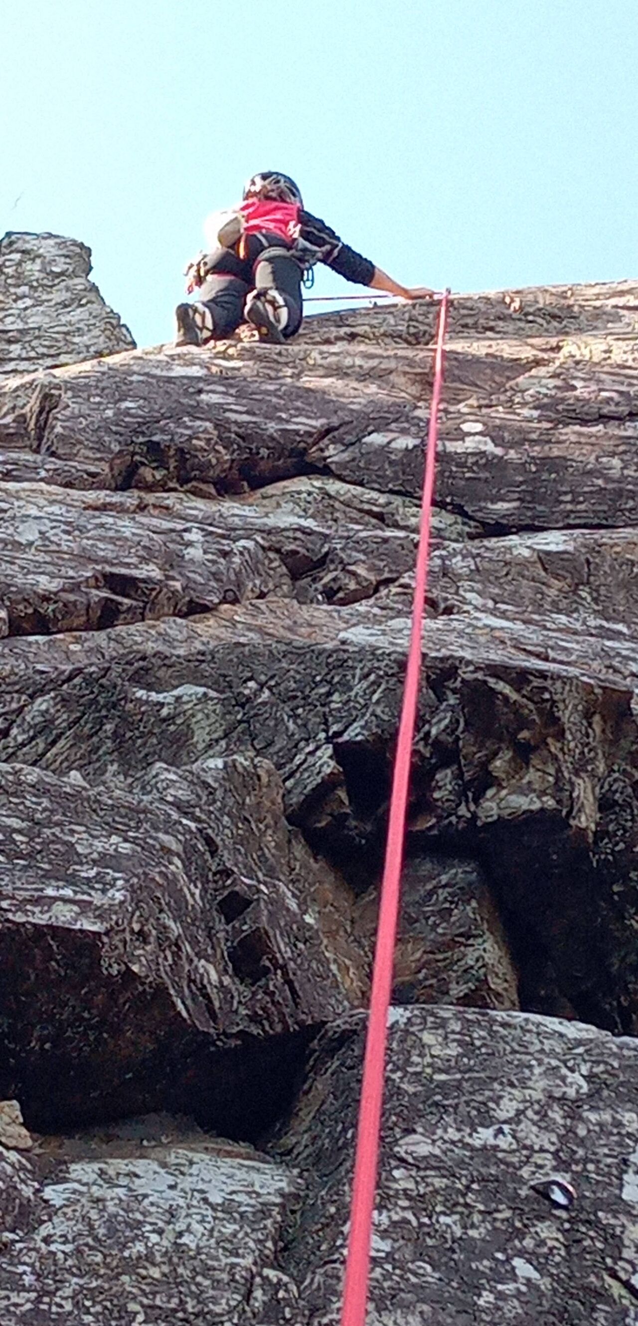 ここで力尽きたので私が担いで稜線まで登りました。(笑)