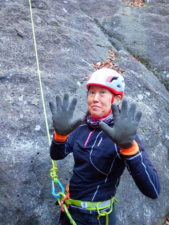 登り方の説明をして、まずはグローブ無しで登ってもらいます。