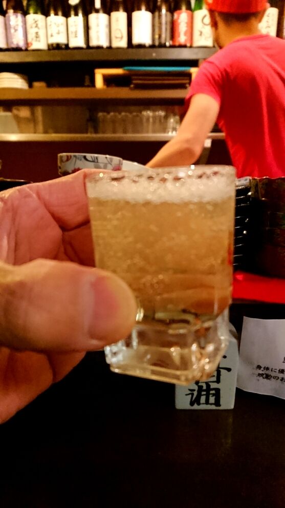 お通しはいつもならビールの小さい缶なのですが、今日はスパークリング日本酒です。