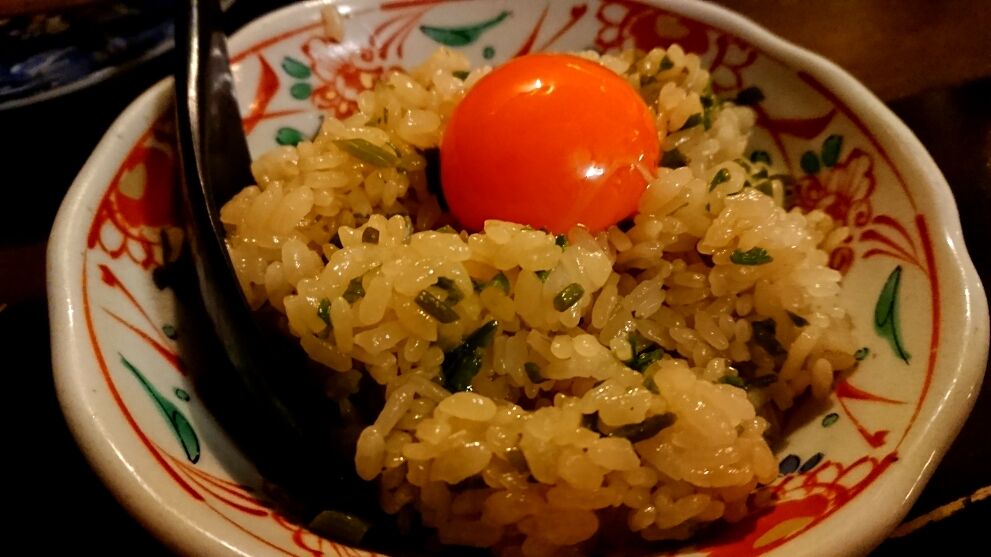 最後に炊き込みご飯に黄身のしっかりとした卵がトッピングされています。