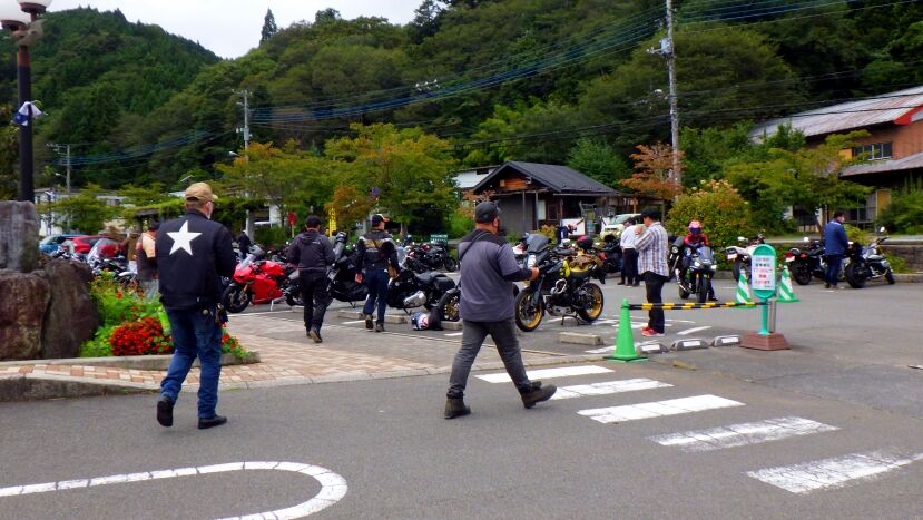 道志の道の駅のバイクパーキングは一杯です。