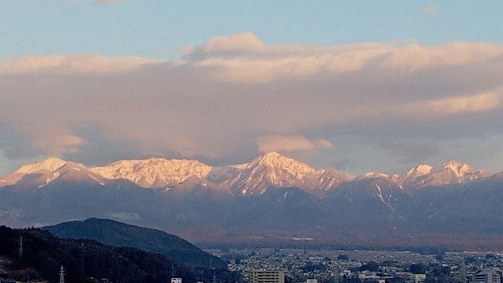 諏訪のホテルの窓から見た八ヶ岳北面。
