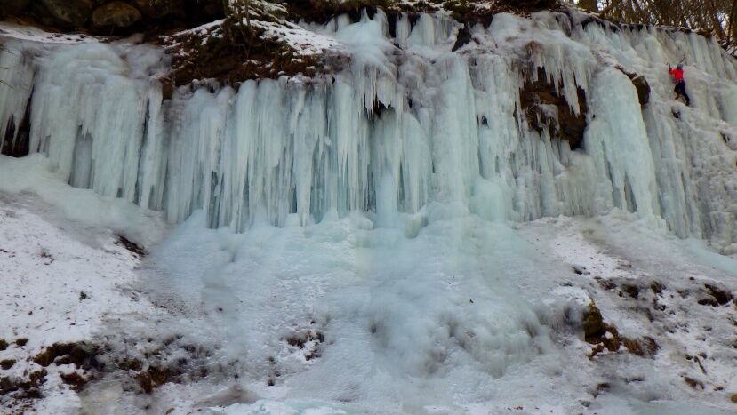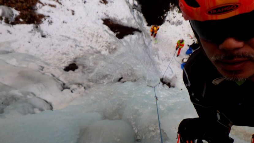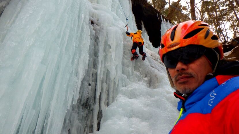 M園さんは今シーズン初のアイスクライミング。