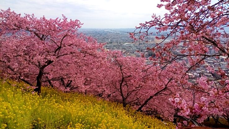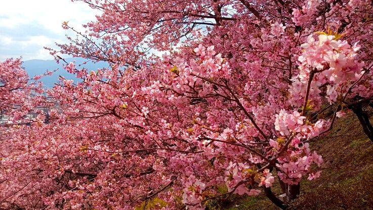 走っていると山麓でピンクに染まっているところがあったので行ってみると河津桜の桜まつりをやっていました。