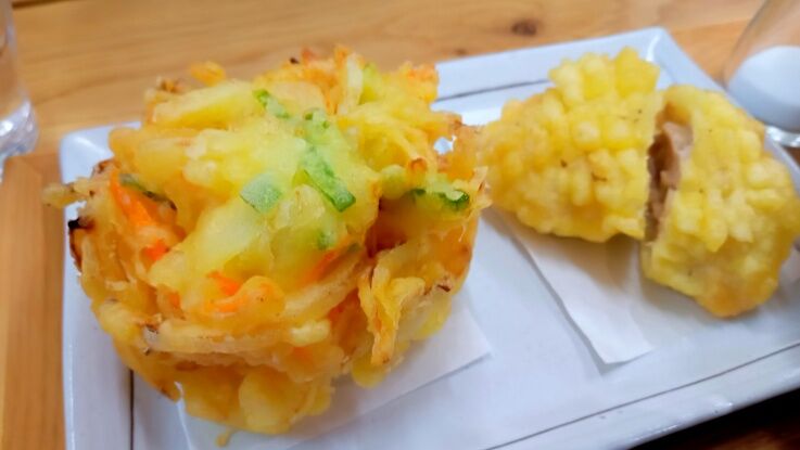 肉汁うどん&鶏天、かき揚げを注文。