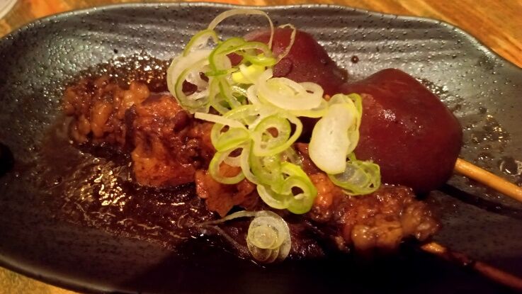 玉蒟蒻と、モツ串。