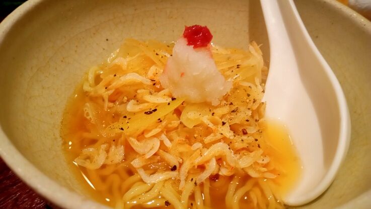 最後の〆は出汁の効いた塩ラーメン。