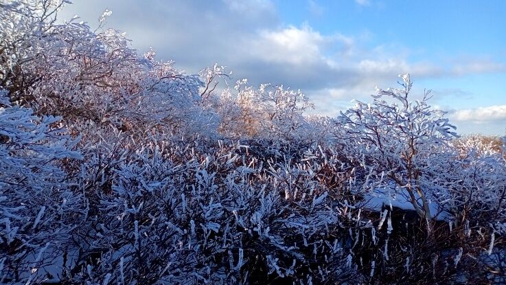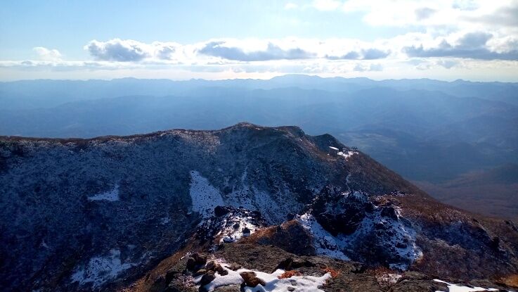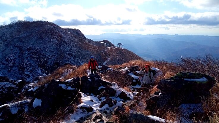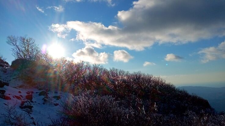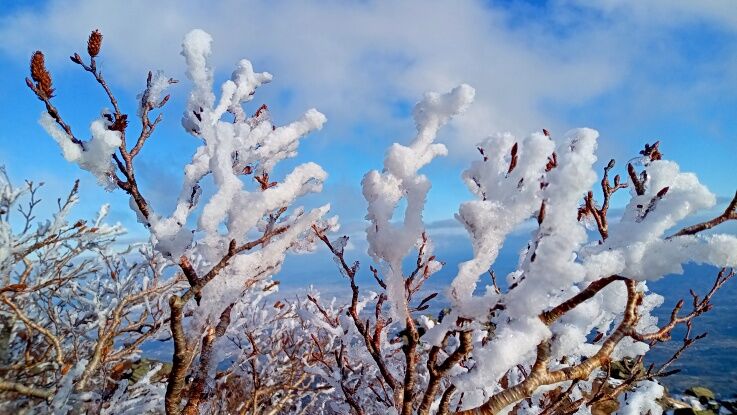 稜線の樹氷が綺麗ですね。