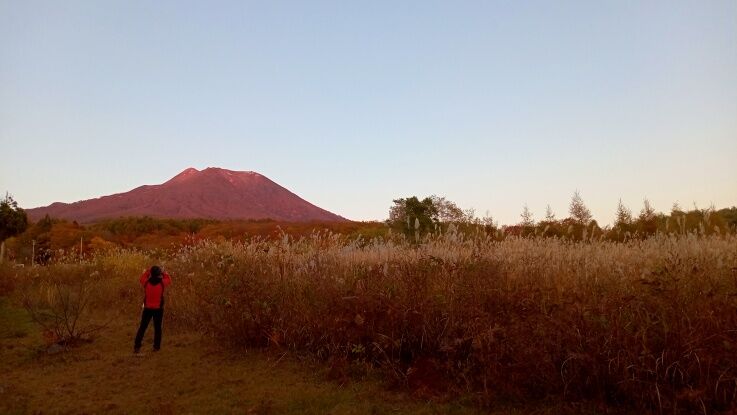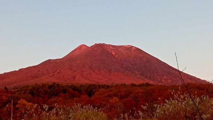 赤く染まった岩木山。