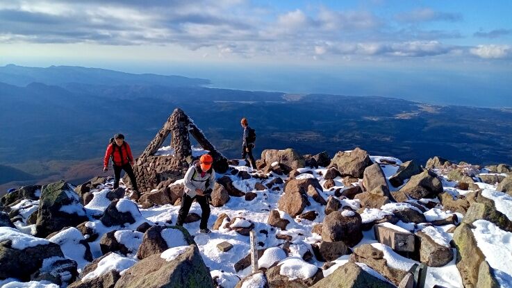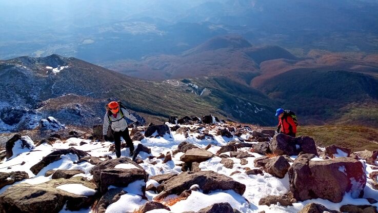 下山は雪で滑りやすいので慎重に。