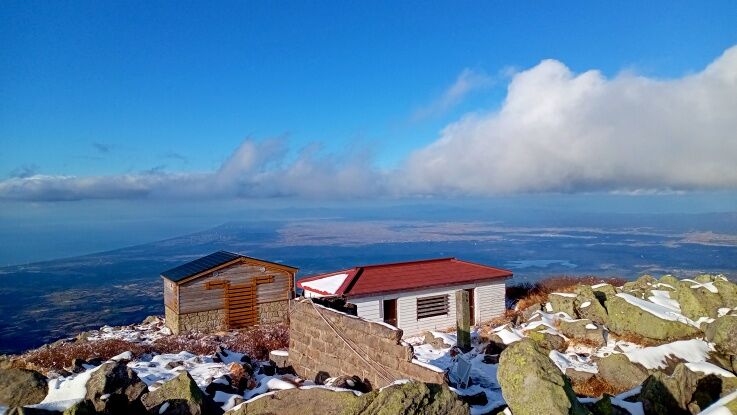 8合目の駐車場から岩木山山頂が見えています。