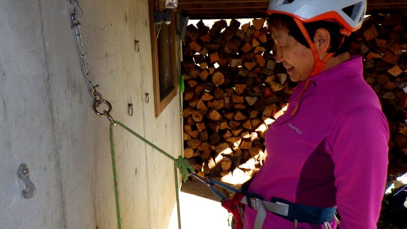 実際に登って練習する前に手順の練習をします。
