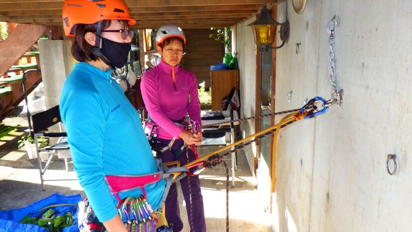 最期にセルフビレーを外す前にロープを張ってもらい体重をロープに移して安全確認。