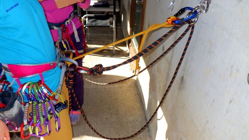 次はリードクライミングの時のヌンチャクへのクリップ練習。