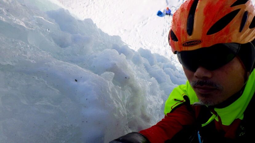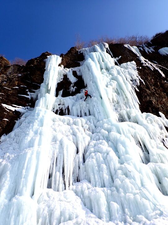 久しぶりのアイスクライミングなのでまだ動きがぎこちないです。