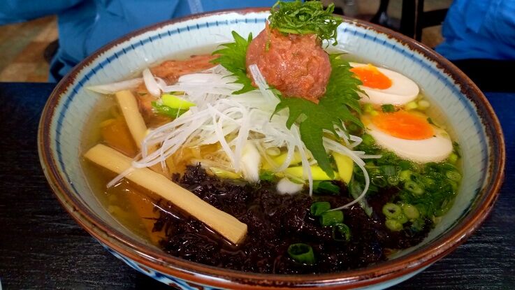 お二人が食べた梅塩ラーメン。