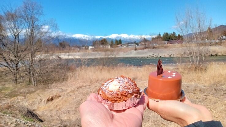 梓川ので山を見ながらケーキタイム。