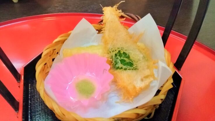 海老が大きな天麩羅付き。