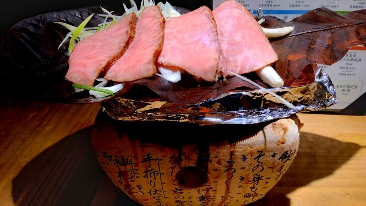 飛騨牛と茸のほうば味噌焼きで。