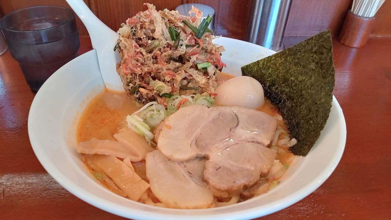 味噌ラーメンにかき揚げ。