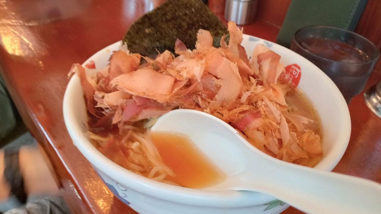 一番だしラーメンには鰹節がたくさん。