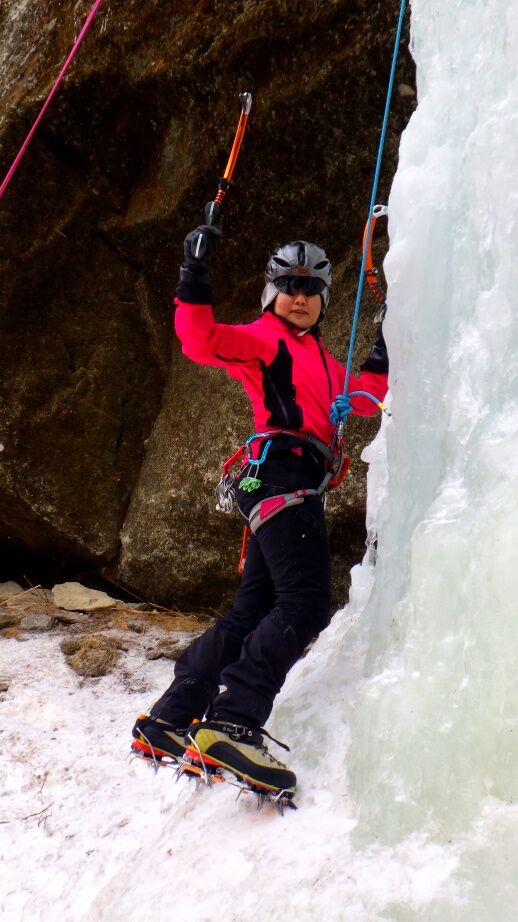 初アイスでこの傾斜はちょっとキツいのでさすがに完登出来ませんでした。