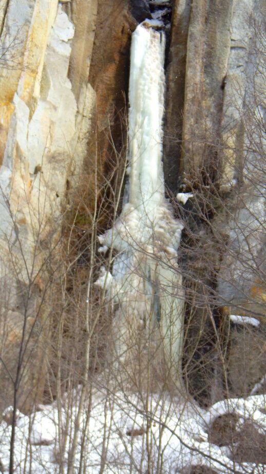 尾滝へ行ってみると昨日の暖気と雨のおかげでかなり溶けていて上部からシャワーになっていました。