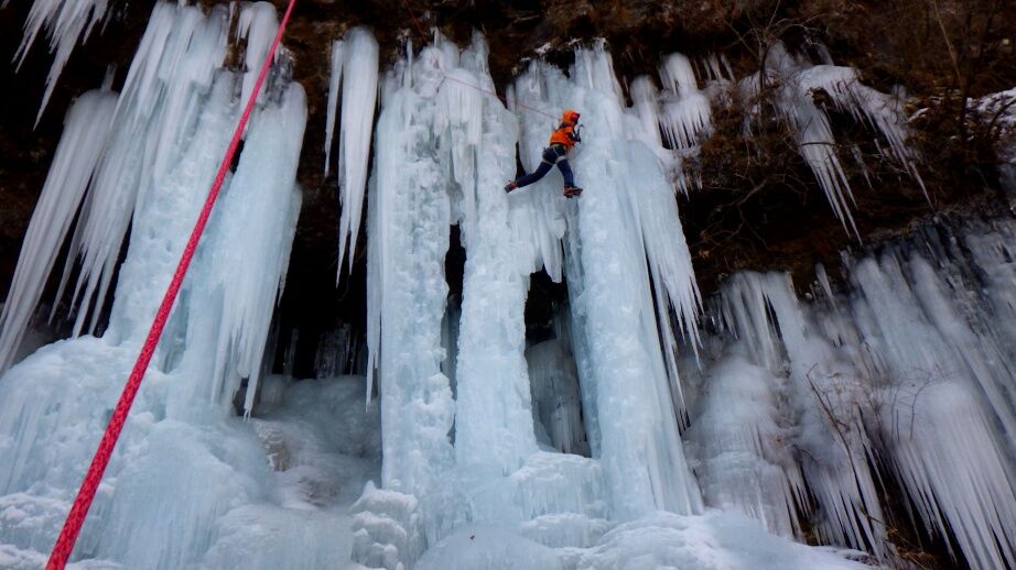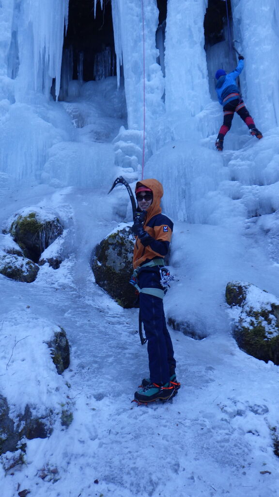 I田さんは1年ぶりの去年の北海道以来のアイスクライミング講習会。