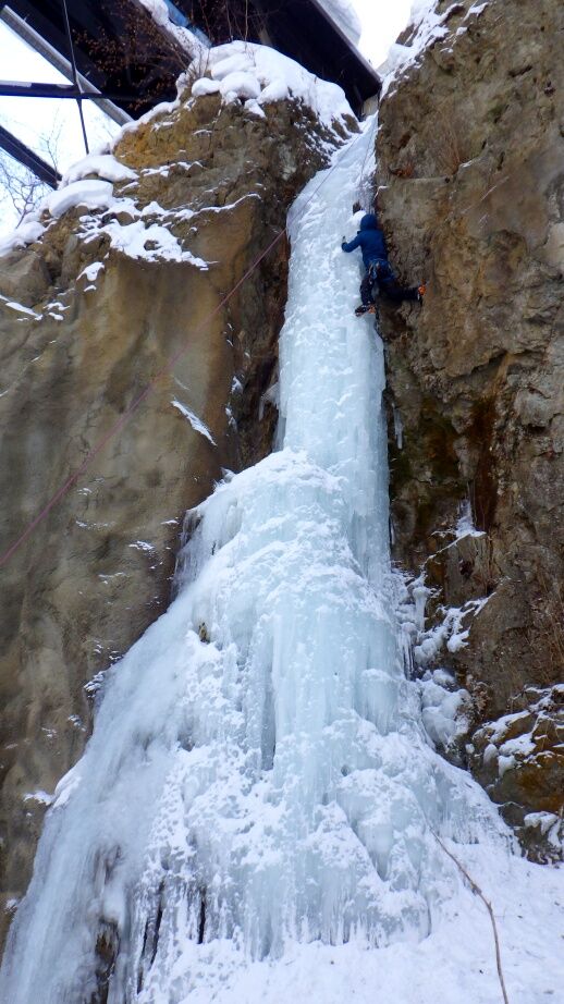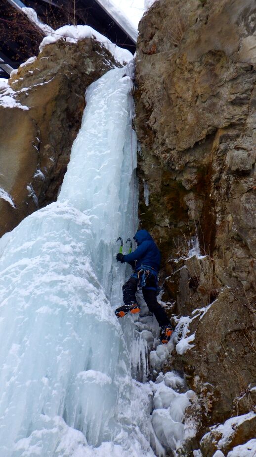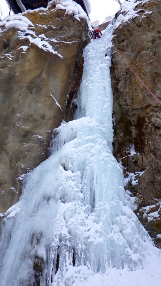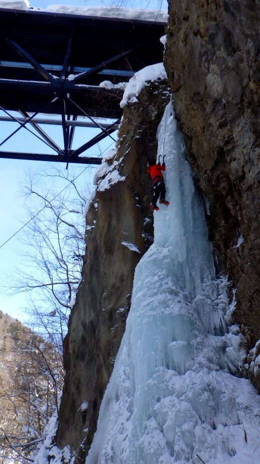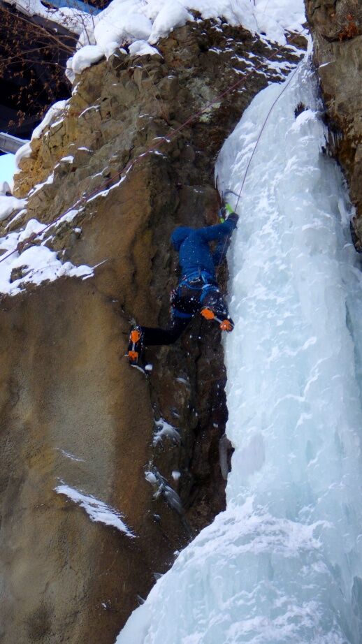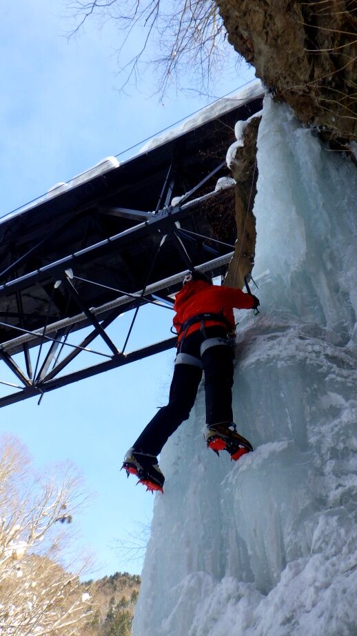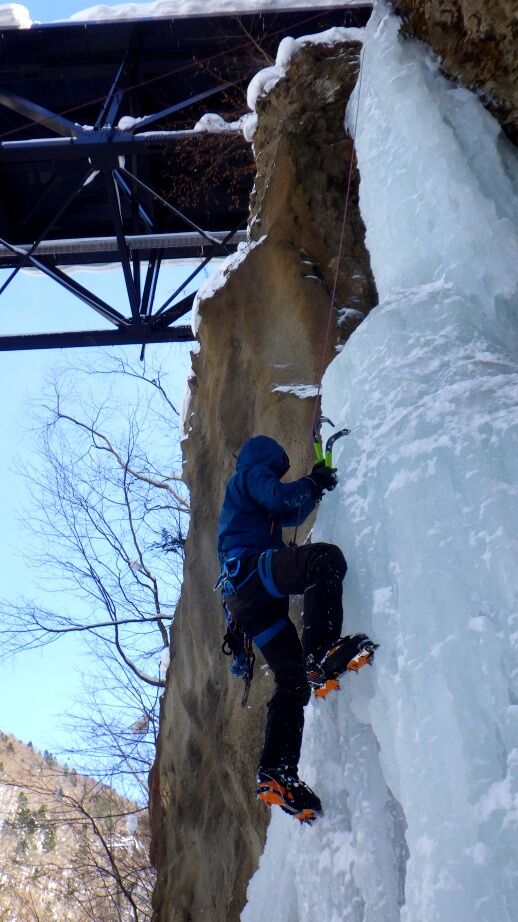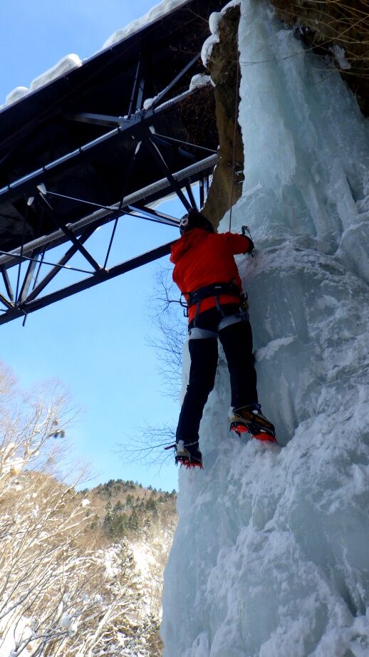 去年は上部はベルグラで登れませんでしたが、今年は上までしっかりと凍っています。