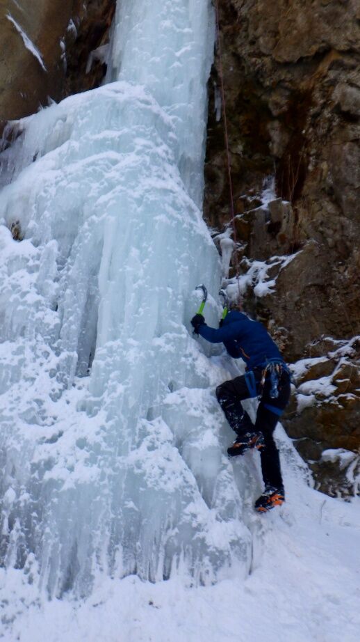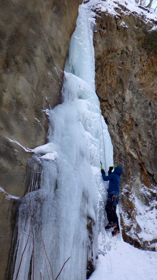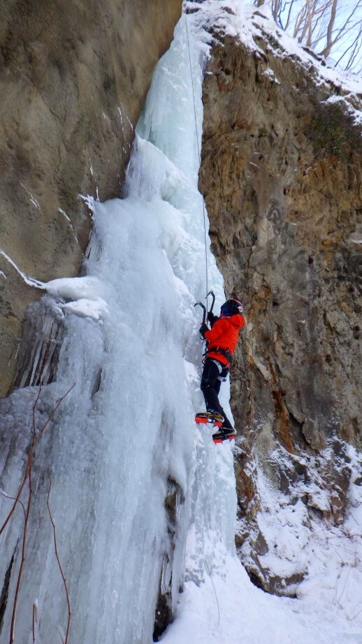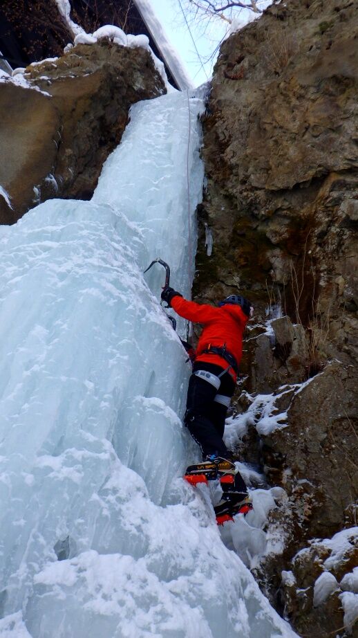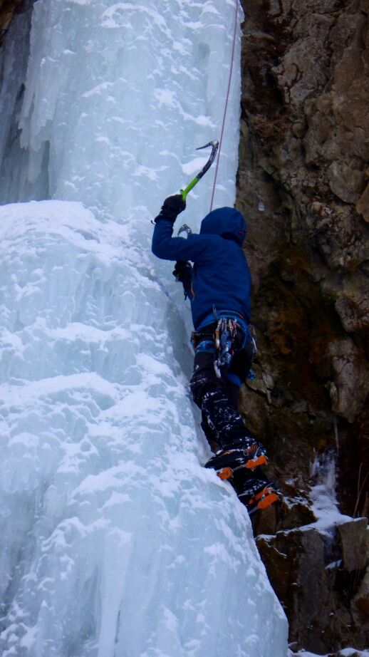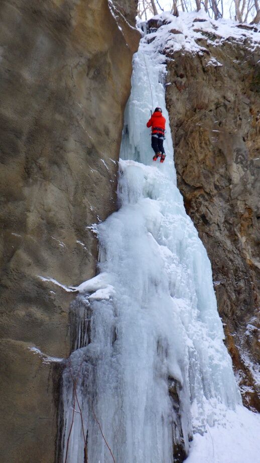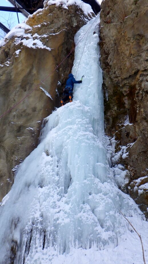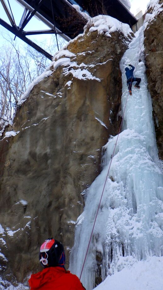 去年は上部はベルグラで登れませんでしたが、今年は上までしっかりと凍っています。