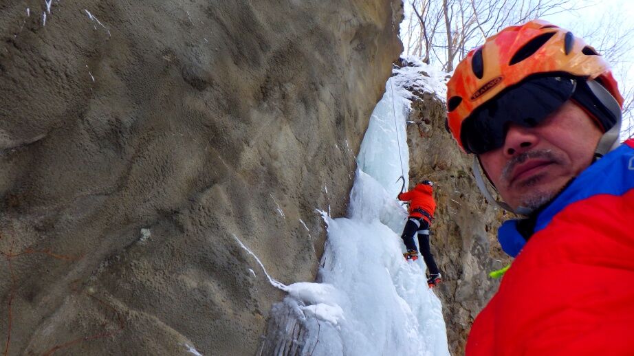アイスはあちこちで登られているので安定した登りです。