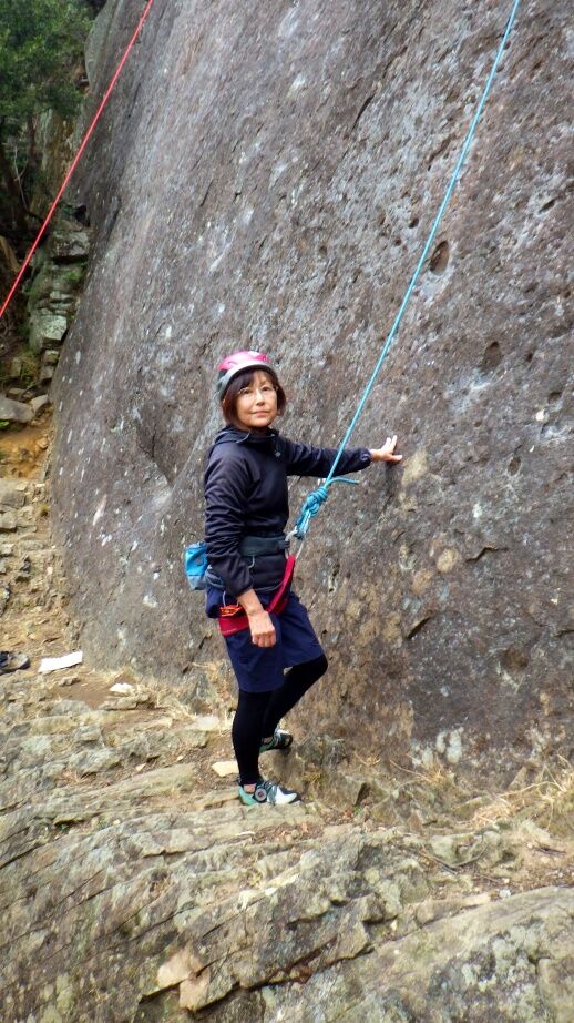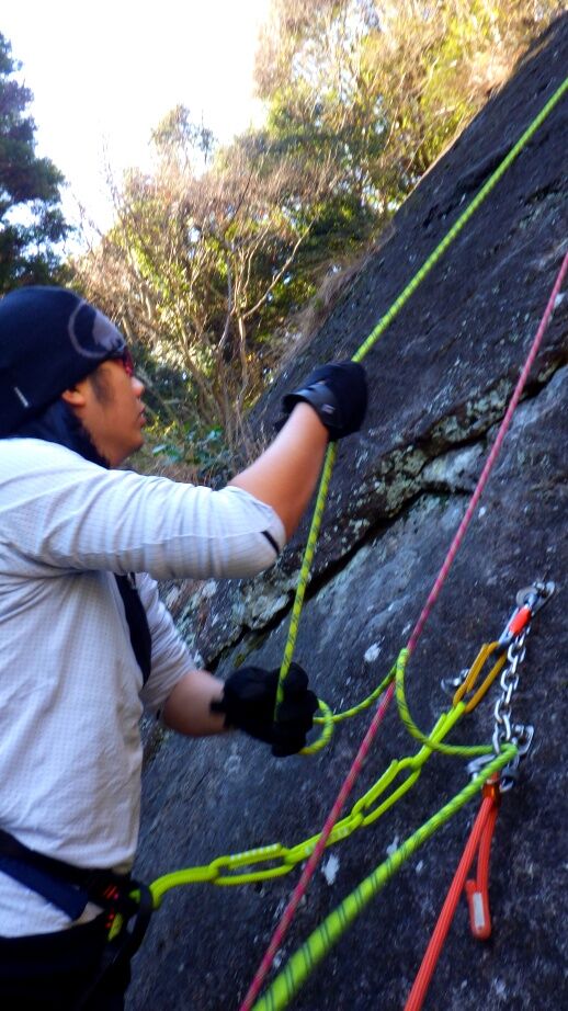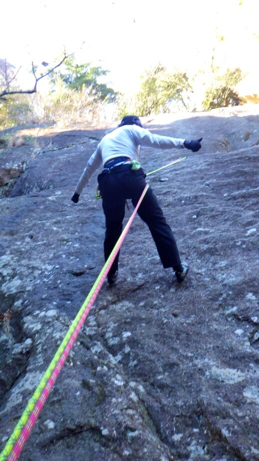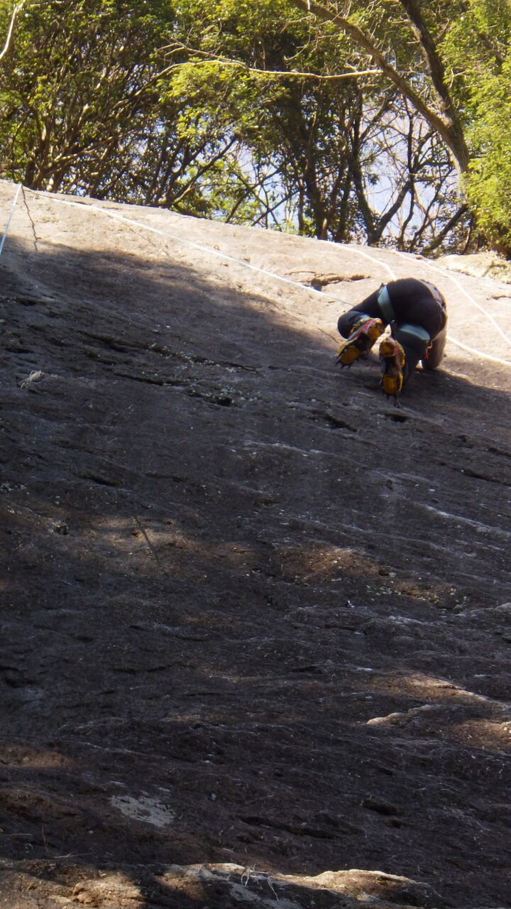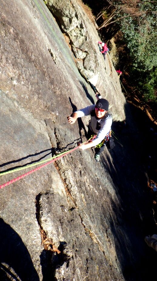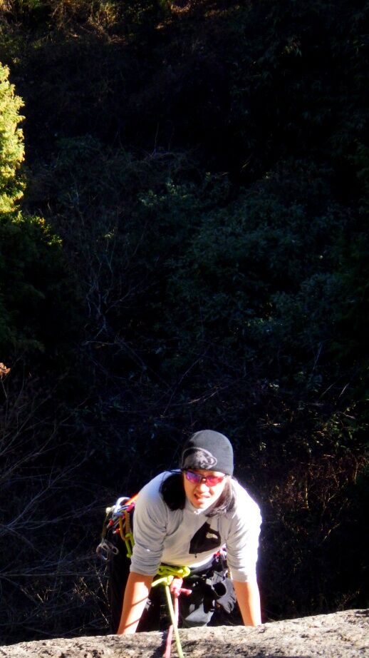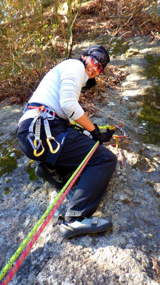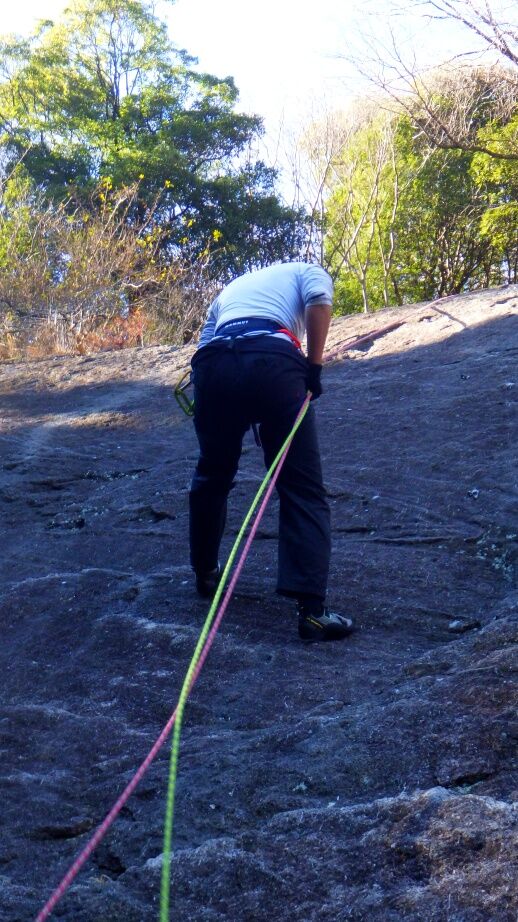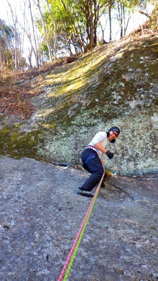 久しぶりの外岩なので慎重に登っていました。
