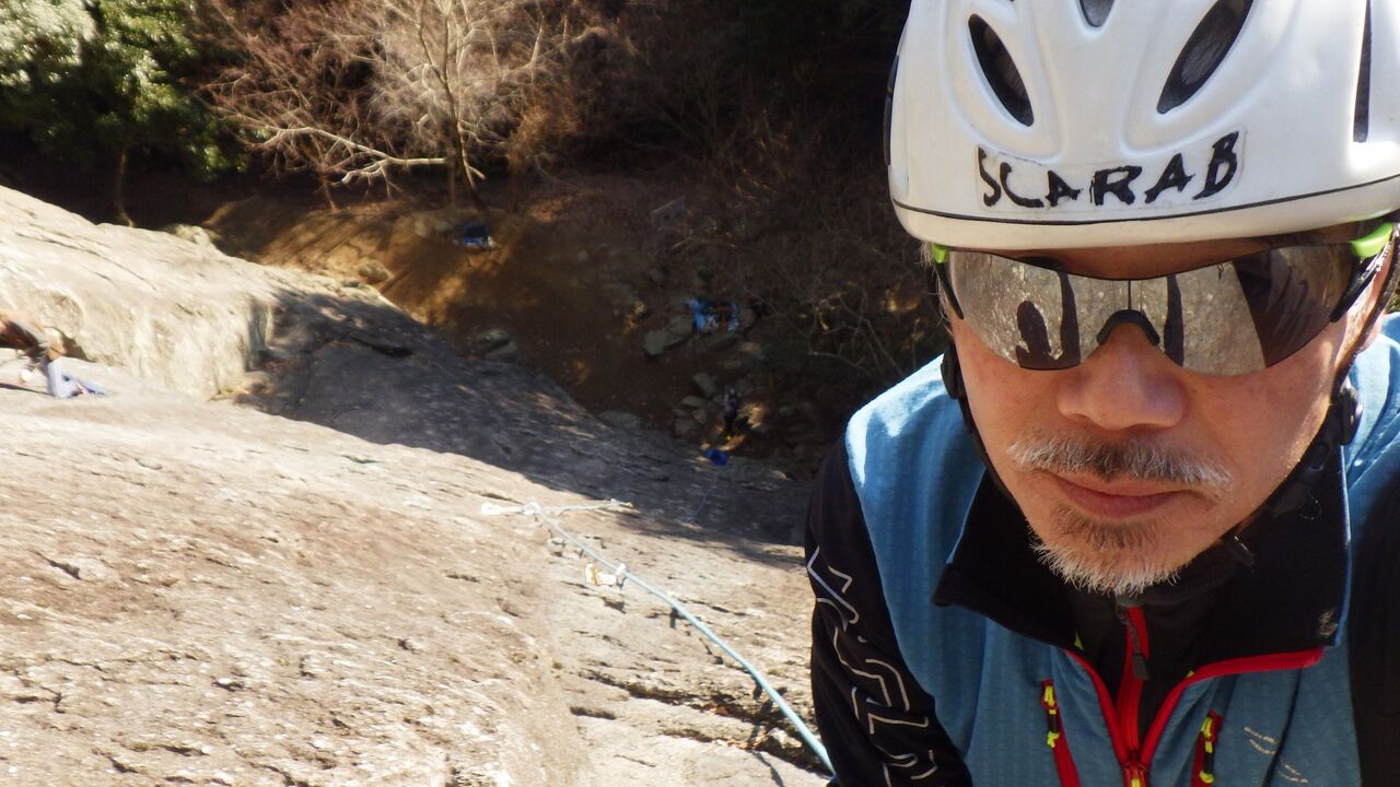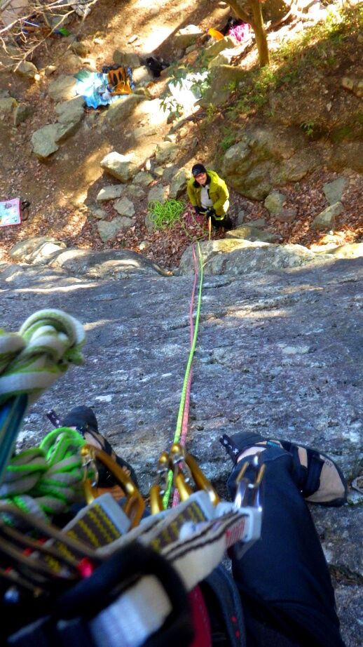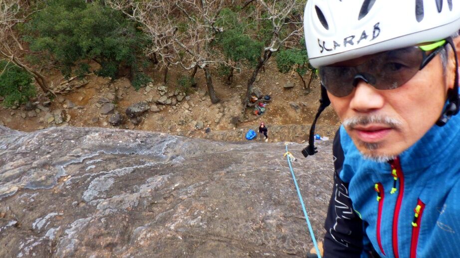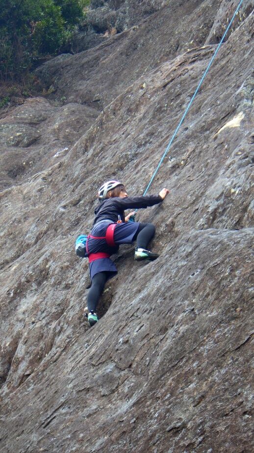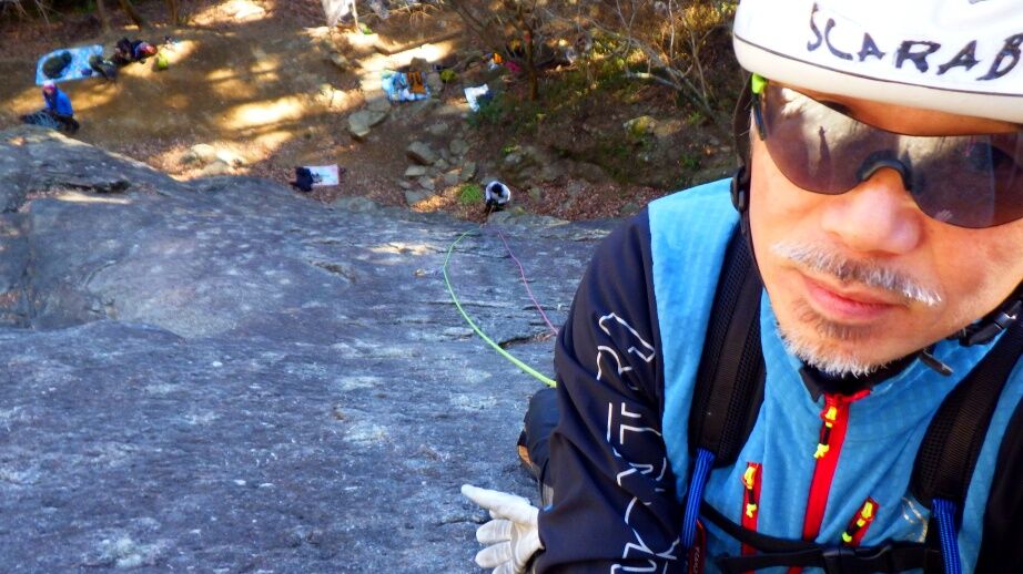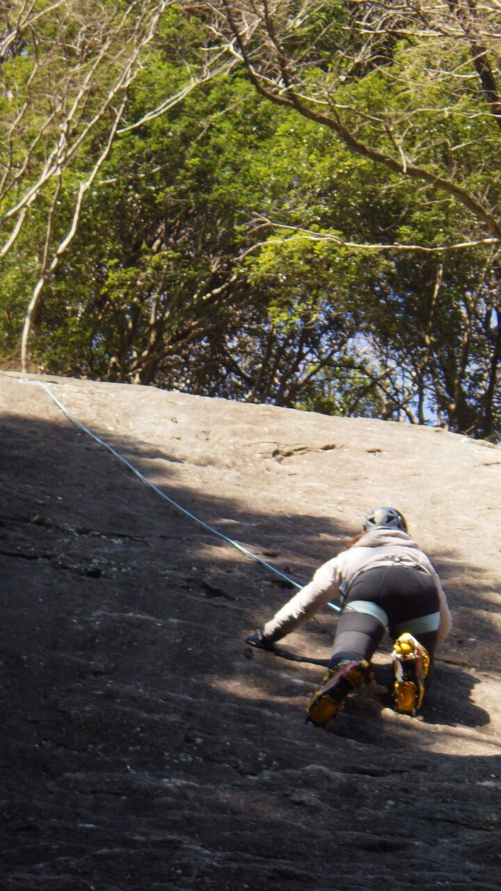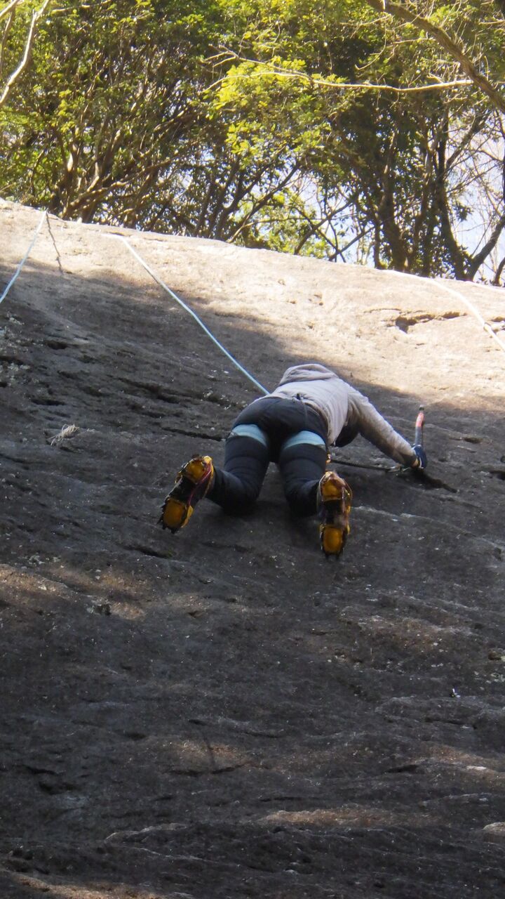 久しぶりの外岩なので慎重に登っていました。