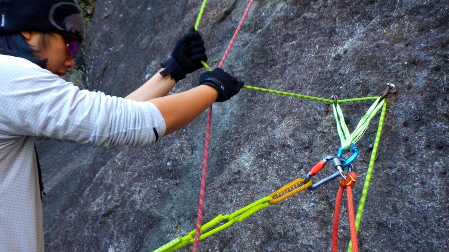まずは一般ルート左にトップロープをセット。
