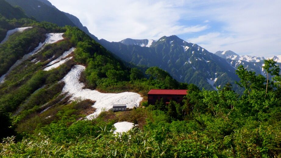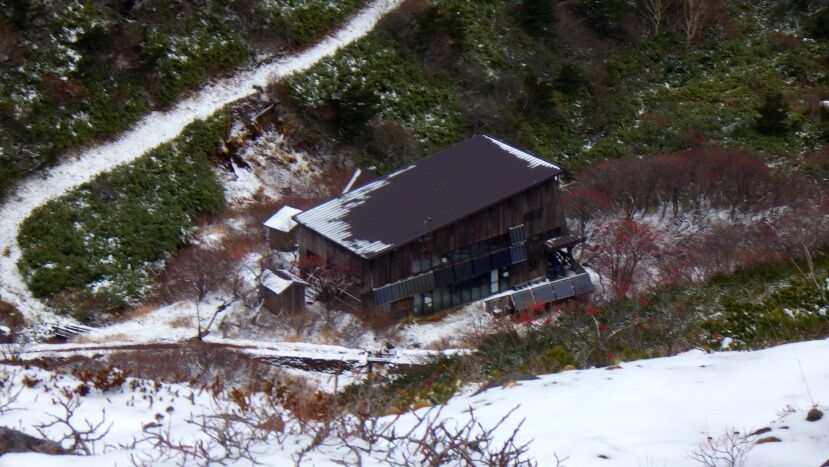 昨日泊まった馬場島山荘が見えていました。