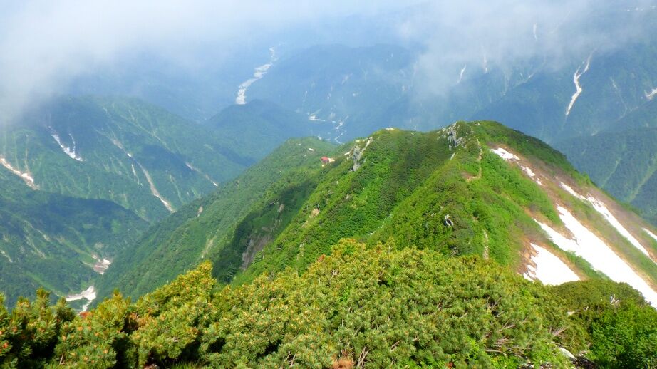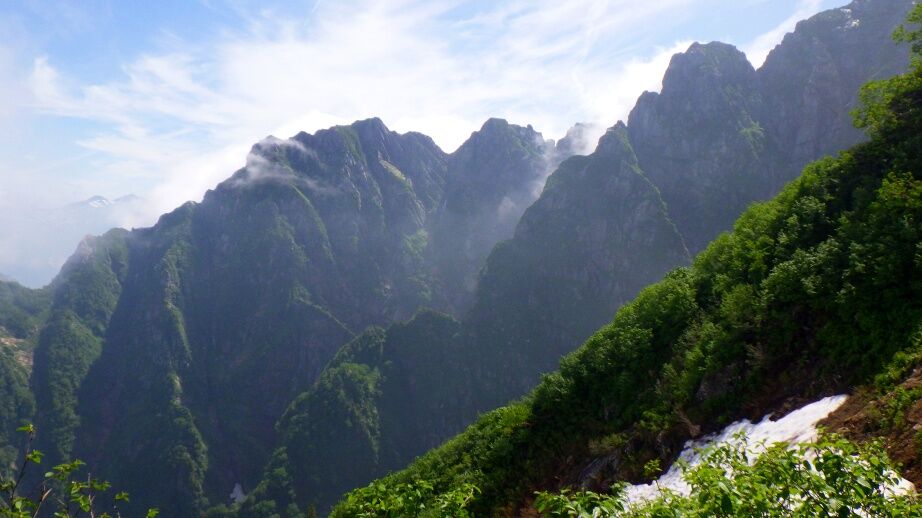 奥が小窓尾根、手前が剱尾根。