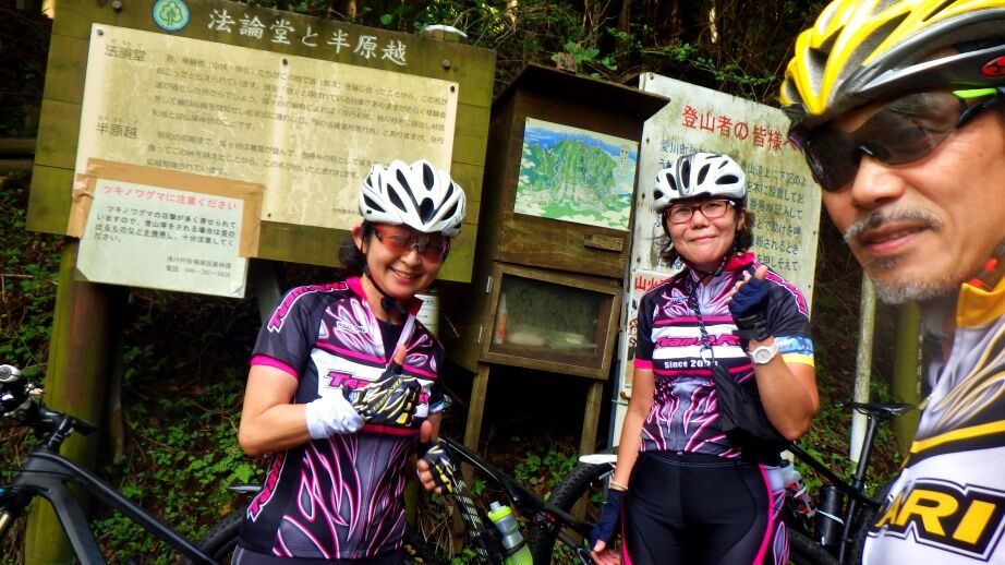 午前中のクライミング講習会が終わって、午後からはMTB講習会で半原越えへ。