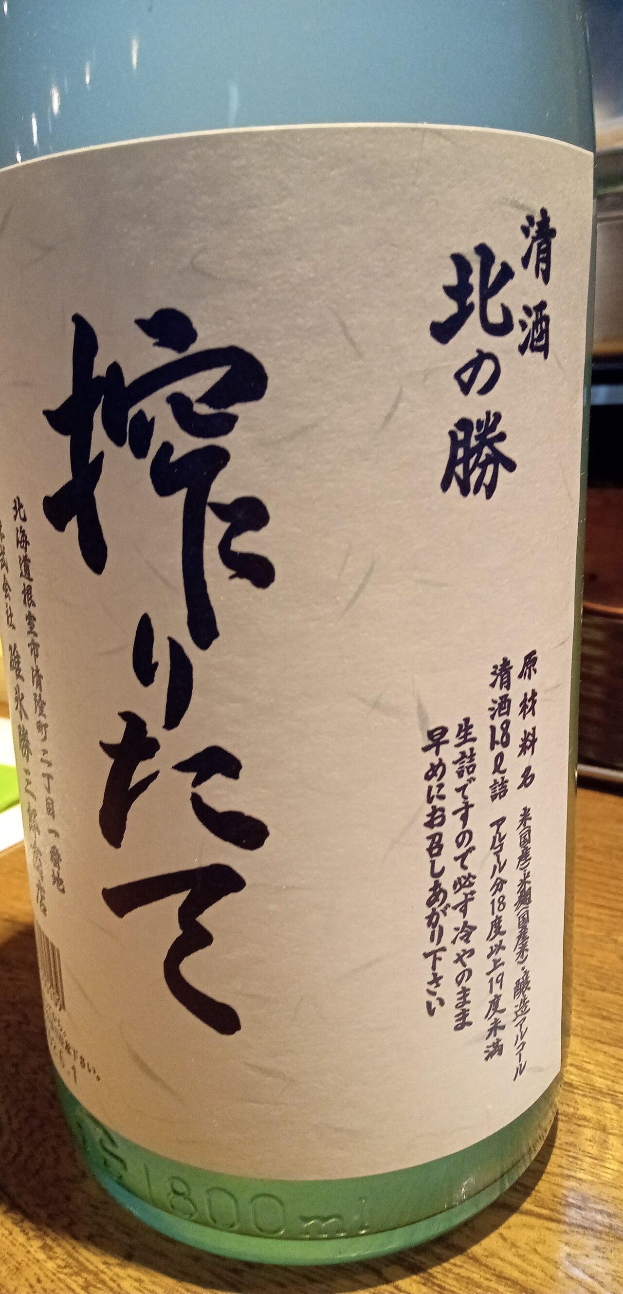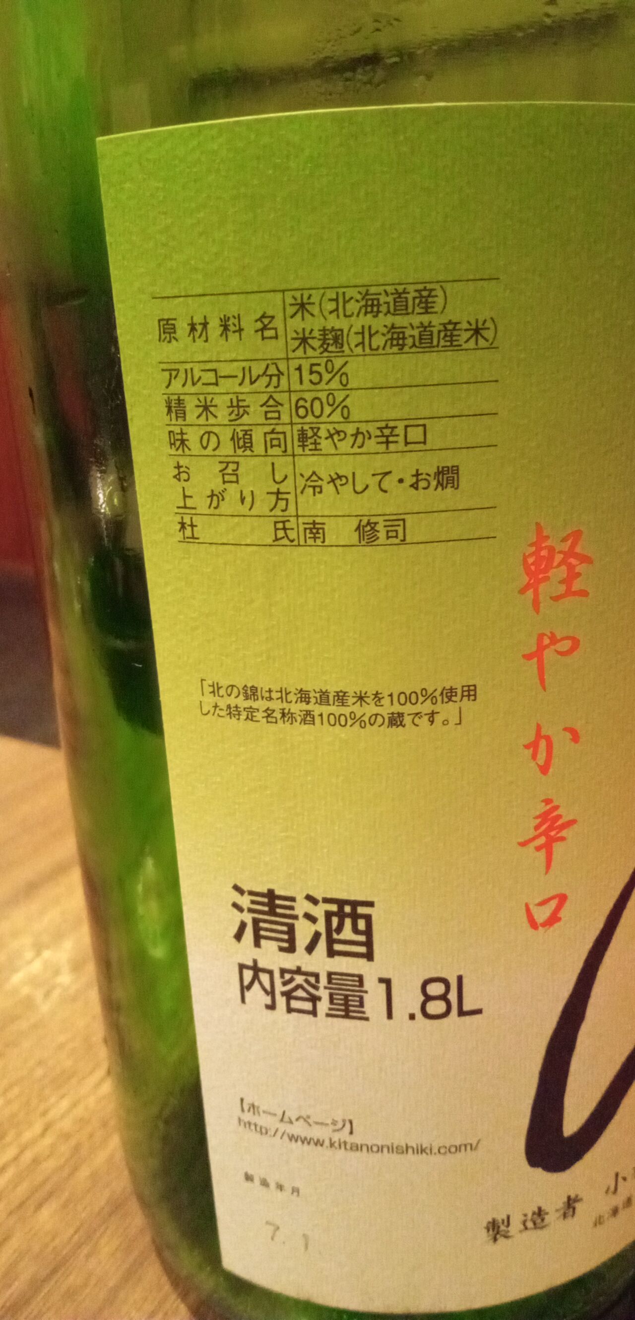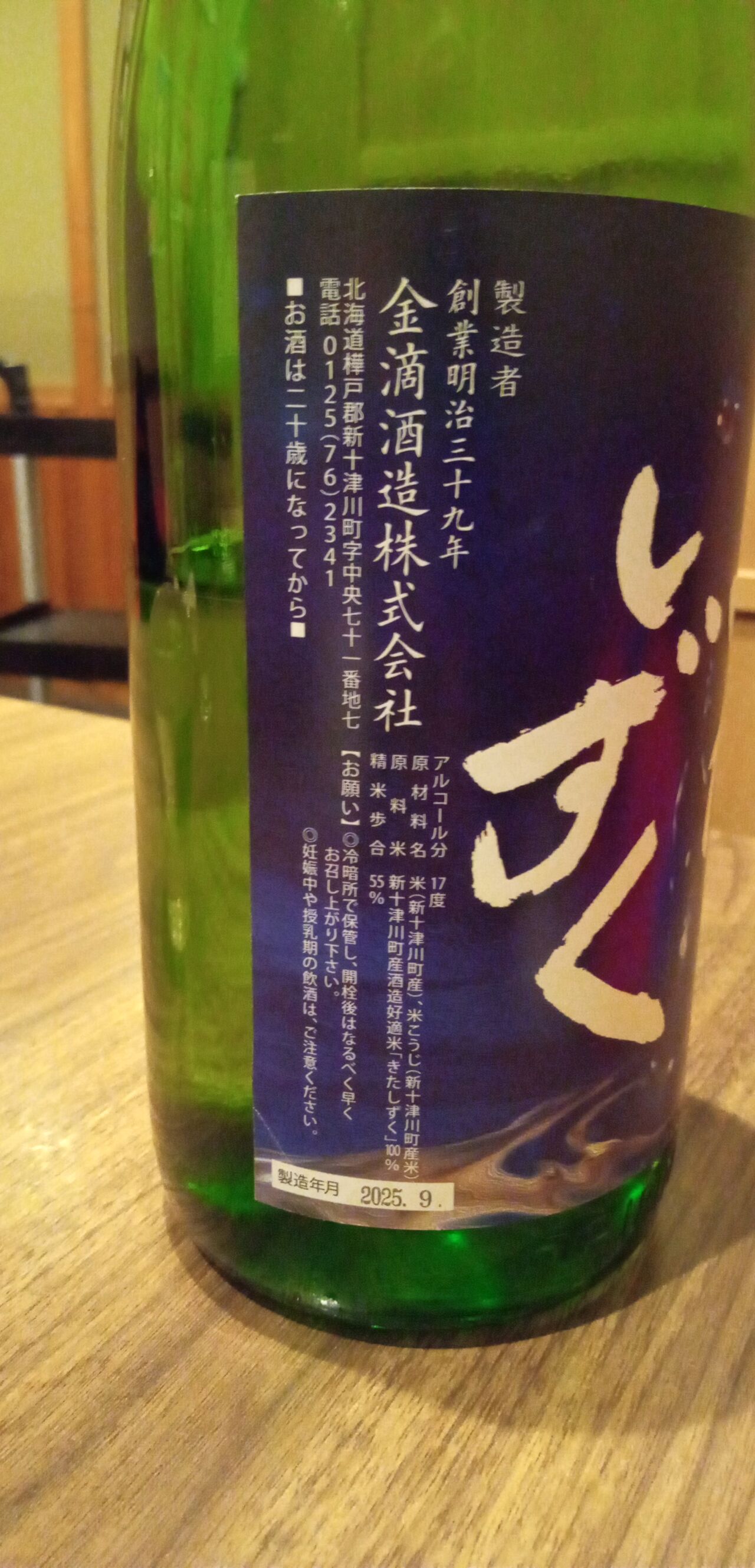 今宵の北海道の地酒3本目は十津川町の「金滴酒蔵/きたしずく」