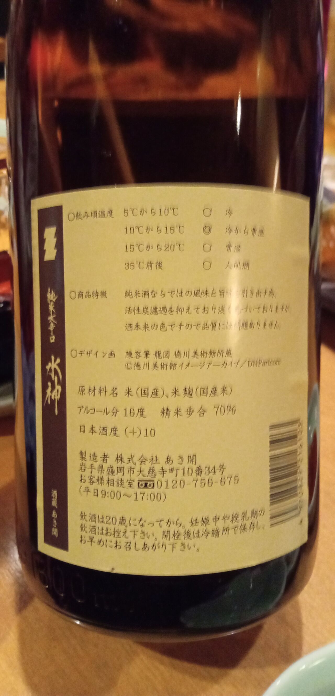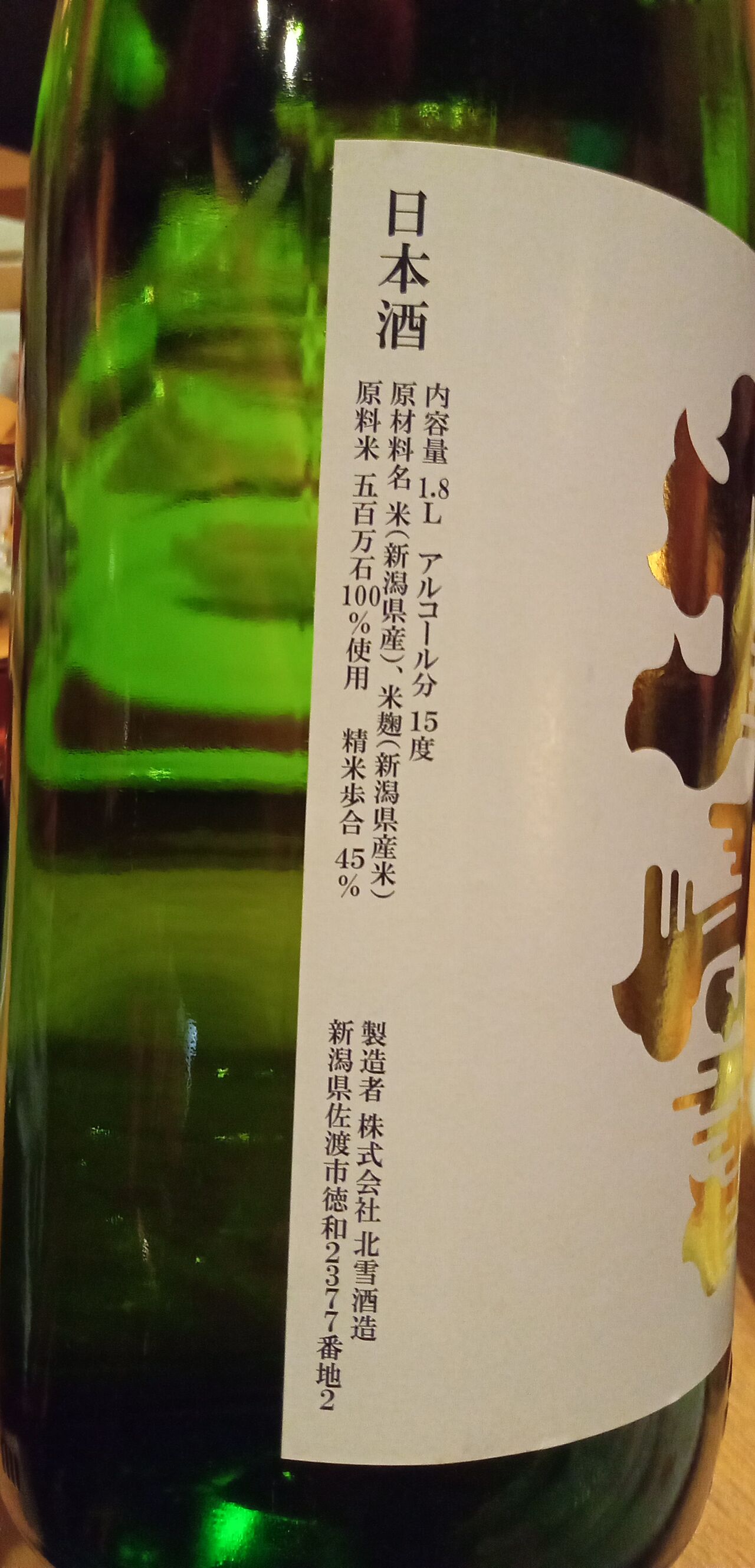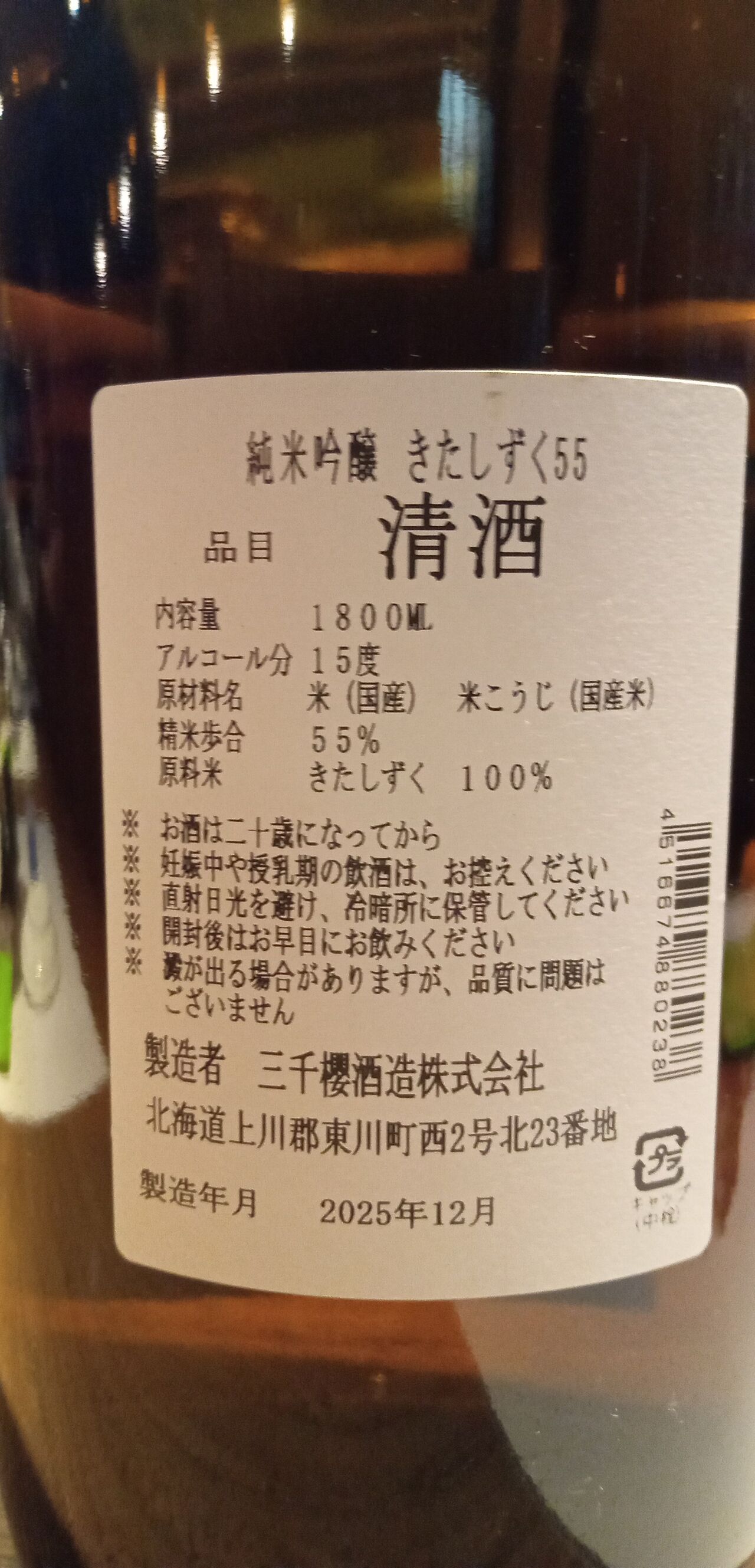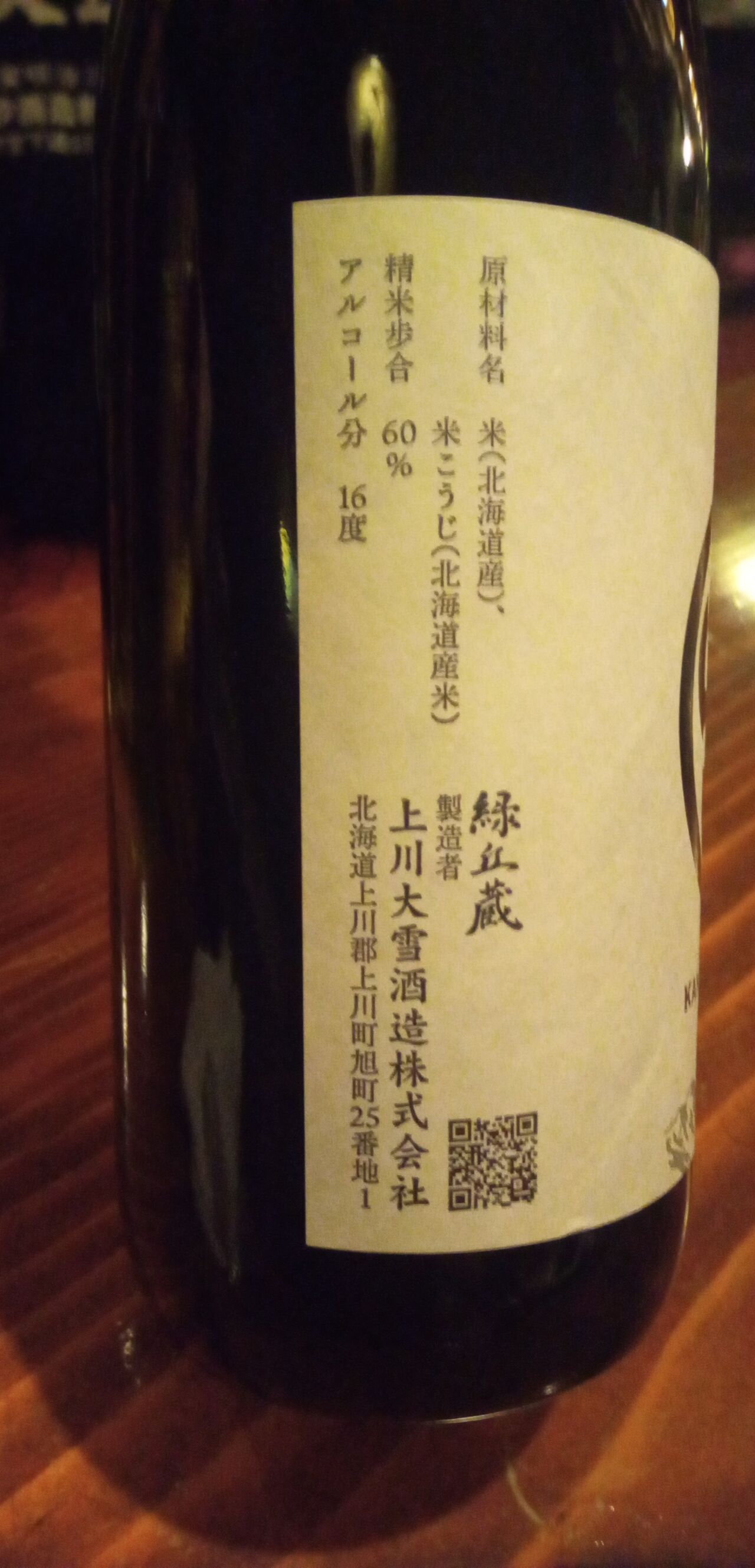 今宵の北海道の地酒3本目は十津川町の「金滴酒蔵/きたしずく」