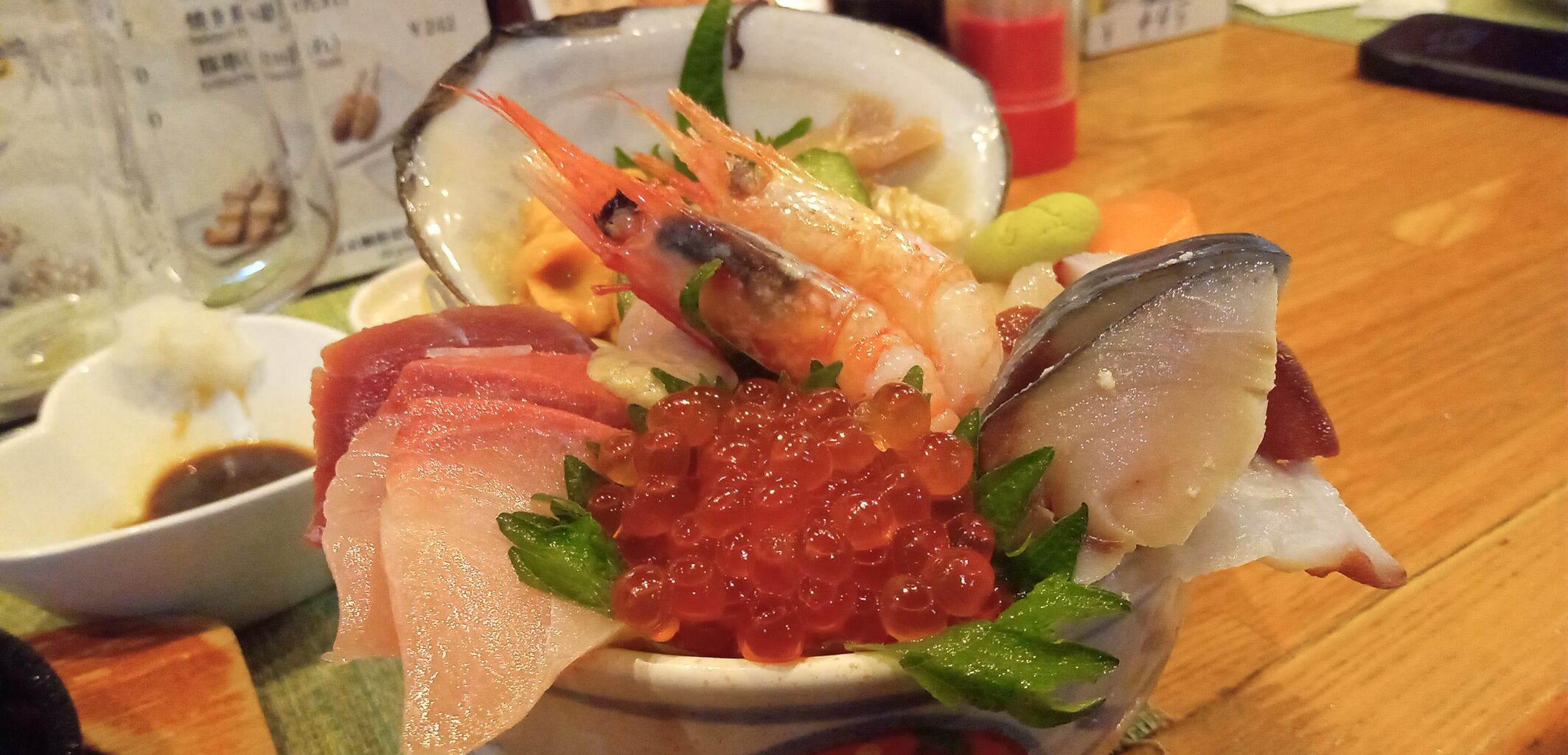 日本酒はもっと飲みたい所でしたが、このお店はサービスが良くて1種類で2合近く注いでくれるので3種類しか飲めませんでした。(笑)