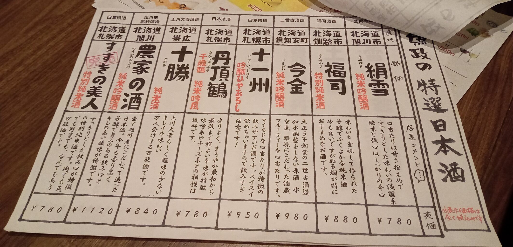 北海道の地酒もたくさんあります。