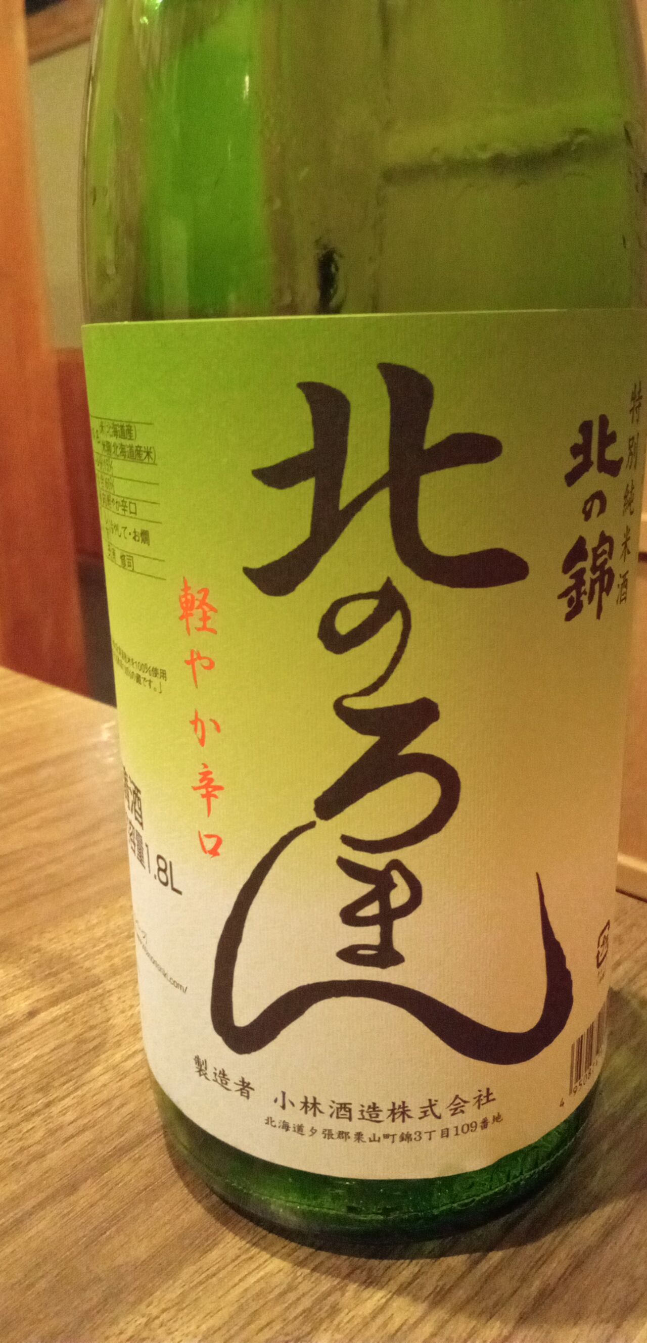 今宵の北海道の地酒2本目は栗山町の「北の錦/北のろまん」