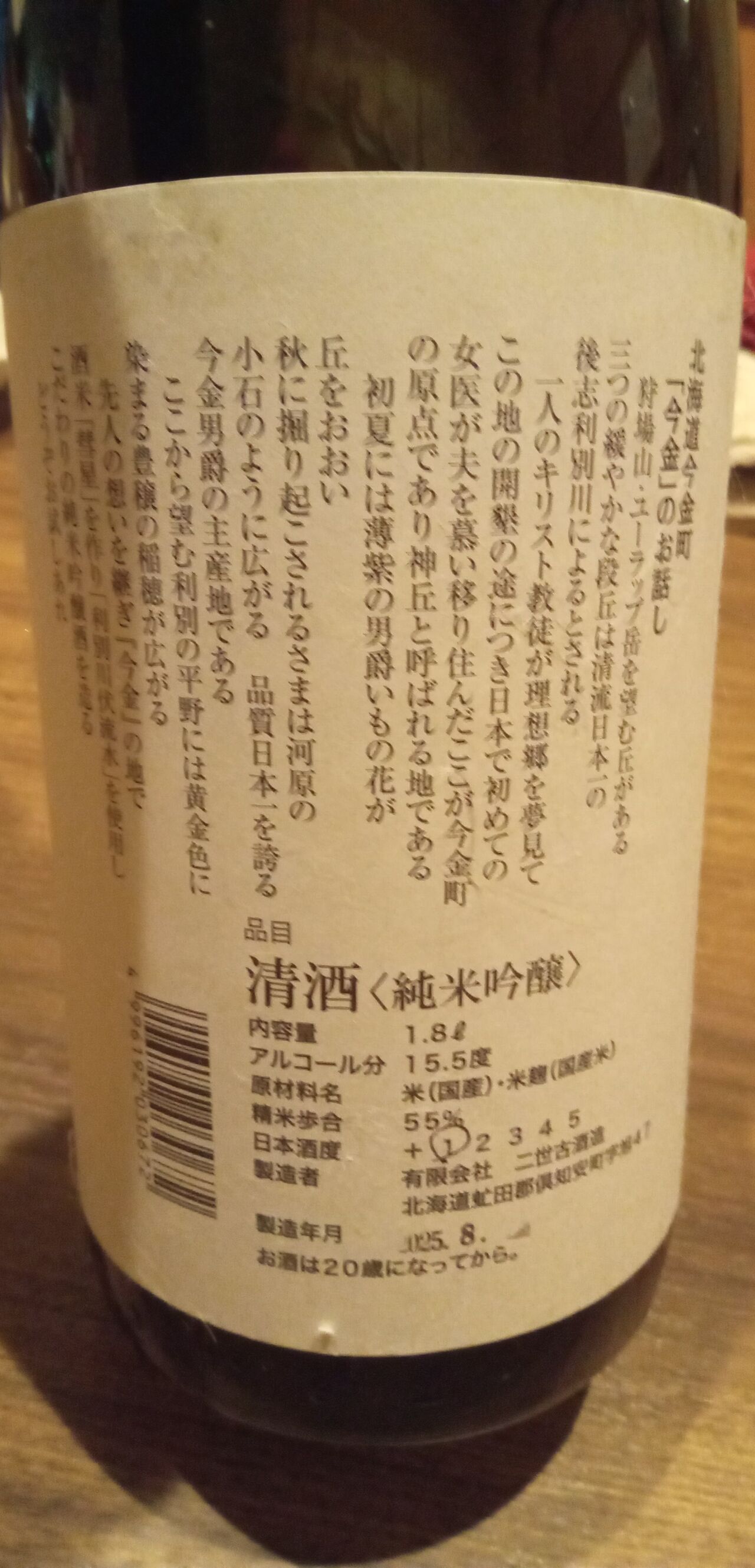 今宵の北海道の地酒1本目は倶知安町の「今金」